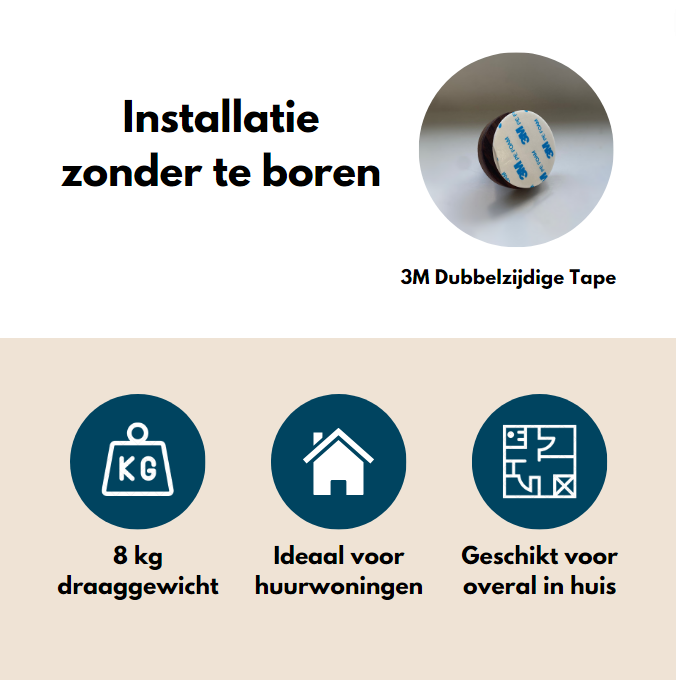 Met de bijgeleverde 3M Dubbelzijdige Tape kun je deze haken moeiteloos op de gewenste plek bevestigen. Het installatieproces is een fluitje van een cent. Deze haken hebben een verfijnde uitstraling, terwijl de stevige 3M Dubbelzijdige Tape ervoor zorgt dat ze een indrukwekkend gewicht van wel 8 kg kunnen dragen!