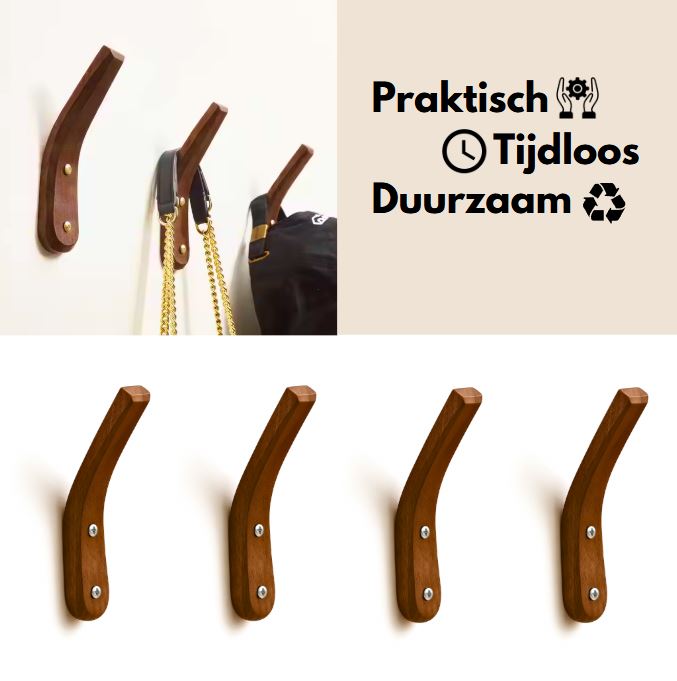 Deze elegante houten kapstokhaken brengen een vleugje klasse in elke ruimte, of het nu de gang, badkamer of kinderkamer is. Het tijdloze ontwerp maakt ze veelzijdig en geschikt voor elke interieurstijl.