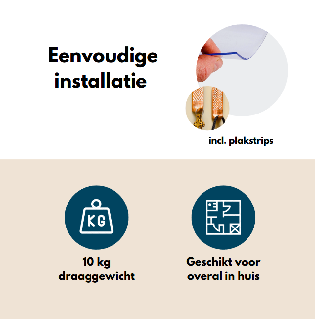 Een combinatie van elegantie en robuustheid - Deze haken hebben een verfijnde uitstraling, terwijl de stevige Dubbelzijdige Plaksticker ervoor zorgt dat ze een indrukwekkend gewicht van wel 10 kg kunnen dragen!
