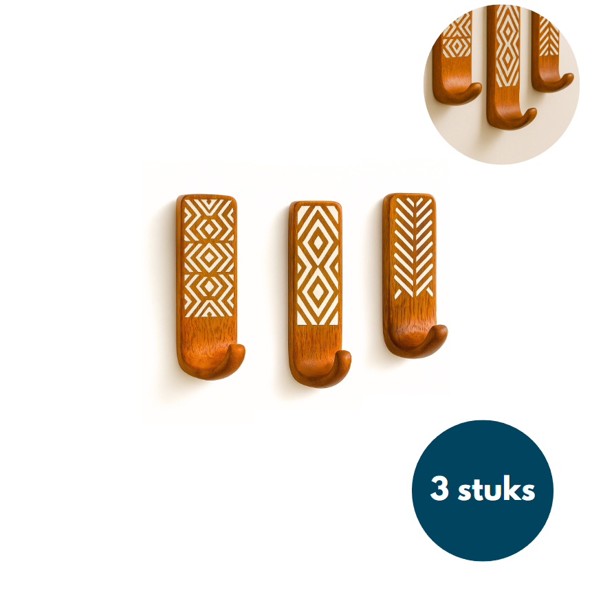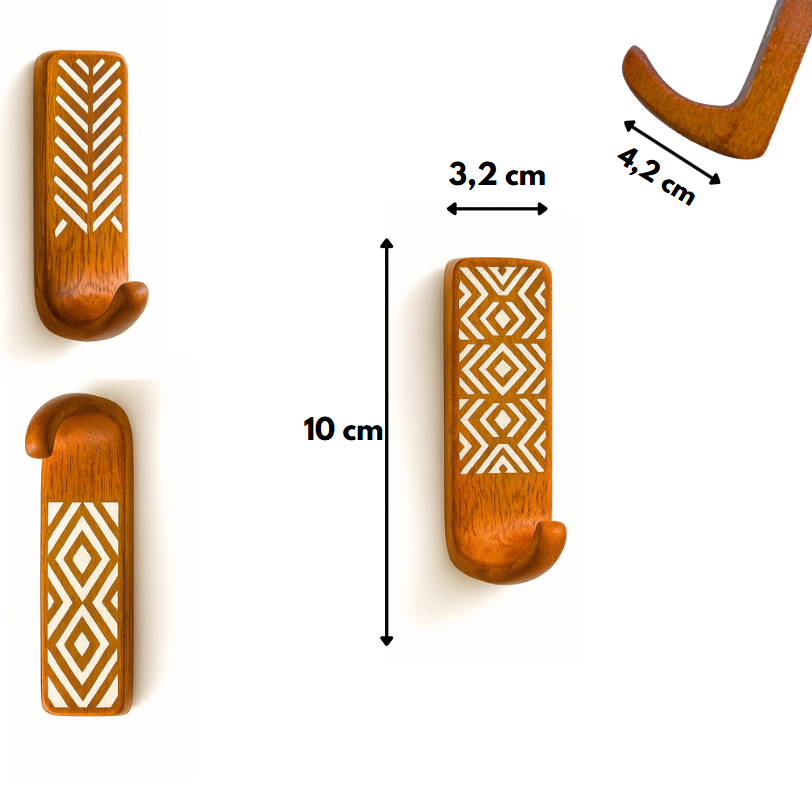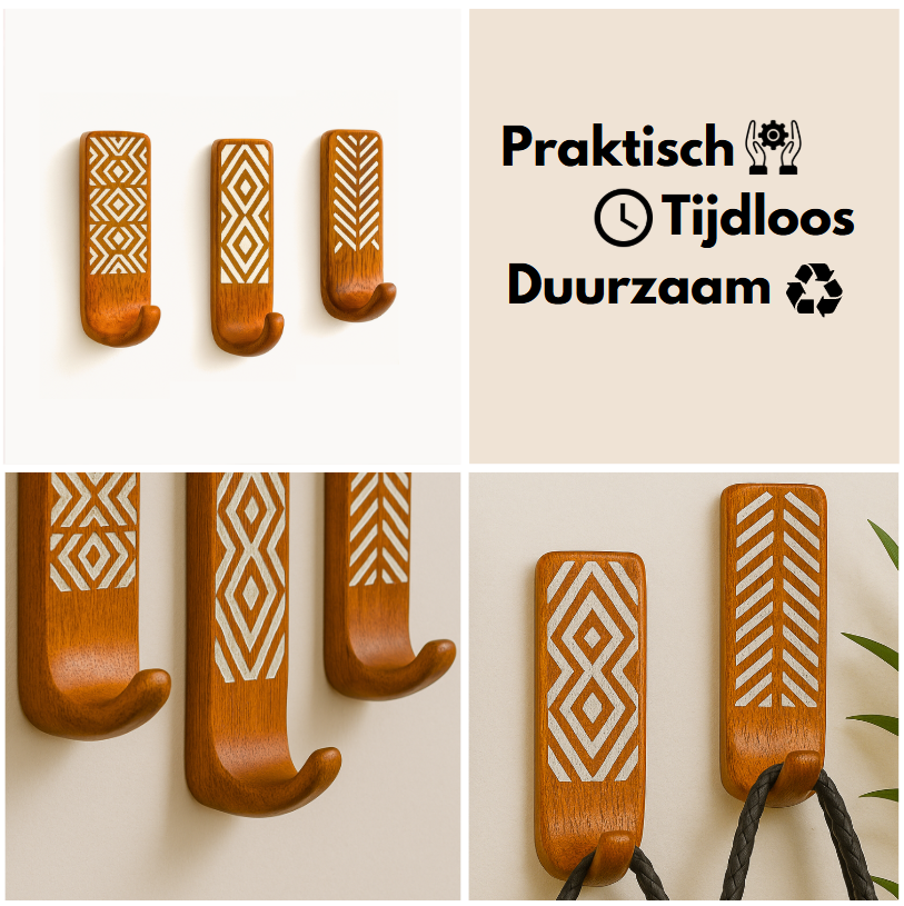 Natuurlijke uitstraling en hoogwaardige materialen - Vervaardigd uit massief hout, stralen deze haken een natuurlijke charme uit en zijn ze uiterst duurzaam en sterk. Elk stuk hout heeft zijn eigen unieke textuur en is met zorg afgewerkt, waardoor de hoogwaardige kwaliteit van deze haken wordt benadrukt.