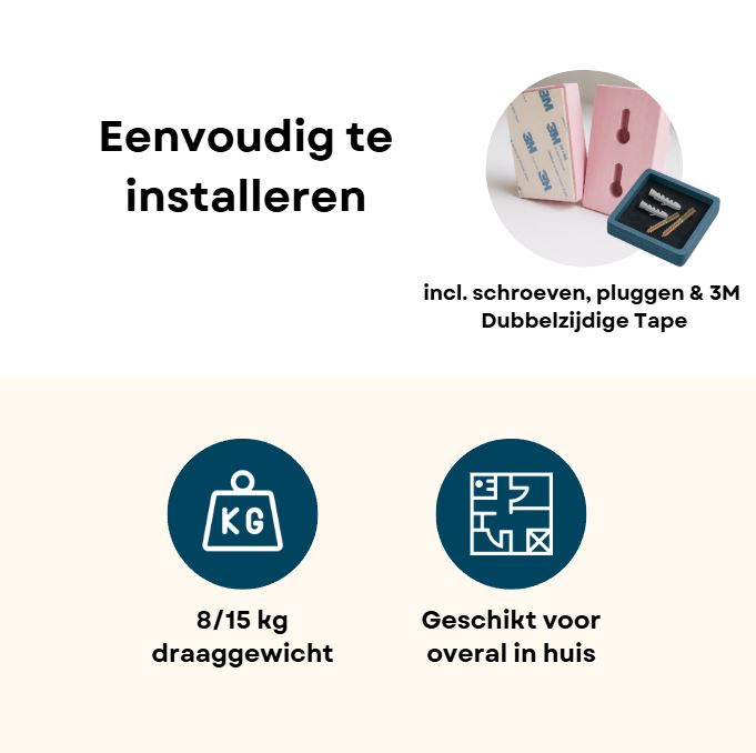 Met de bijgeleverde 3M Dubbelzijdige Tape kun je deze haken moeiteloos op de gewenste plek bevestigen. Het installatieproces is een fluitje van een cent. Deze haken hebben een verfijnde uitstraling, terwijl de stevige 3M Dubbelzijdige Tape ervoor zorgt dat ze een indrukwekkend gewicht van wel 8 kg kunnen dragen!